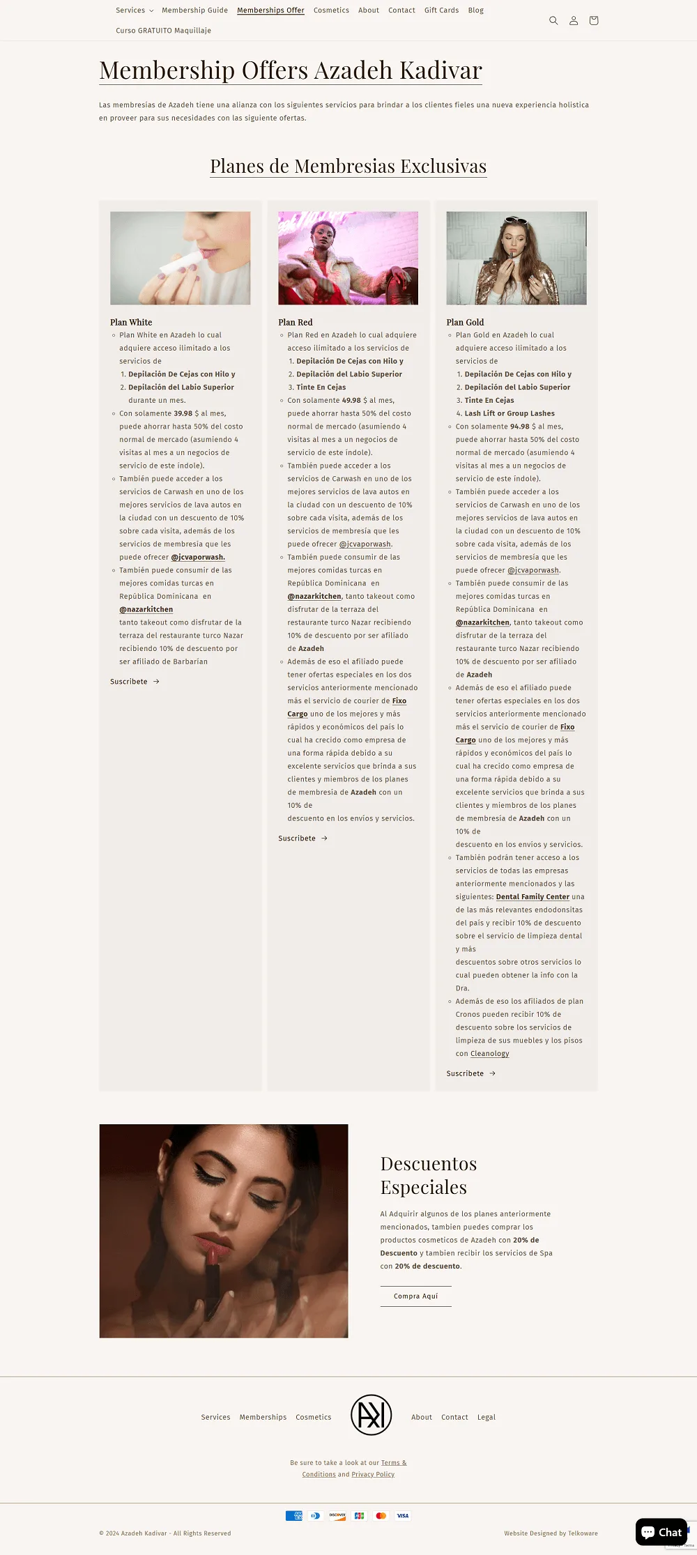 Azadeh Kadivar is a beauty salon, based in Dominican Republic, offering a wide variety of beauty services at 2 locations.