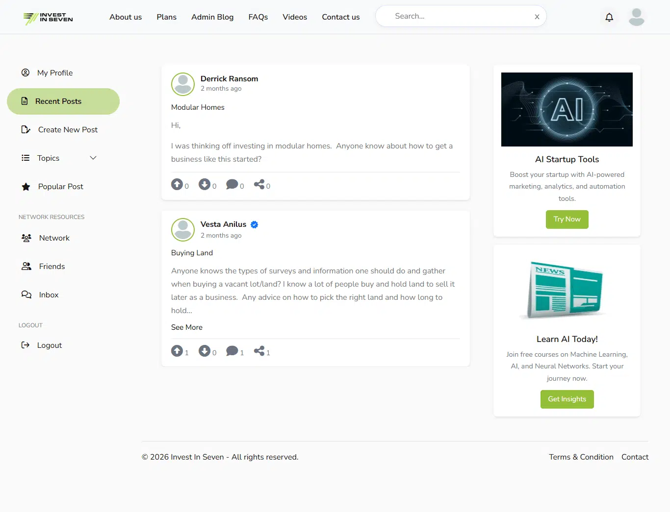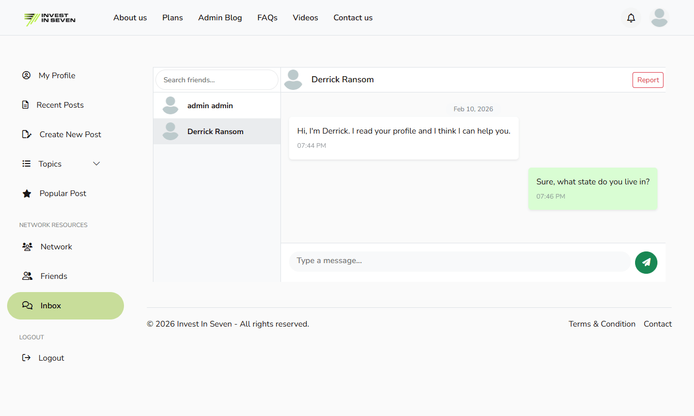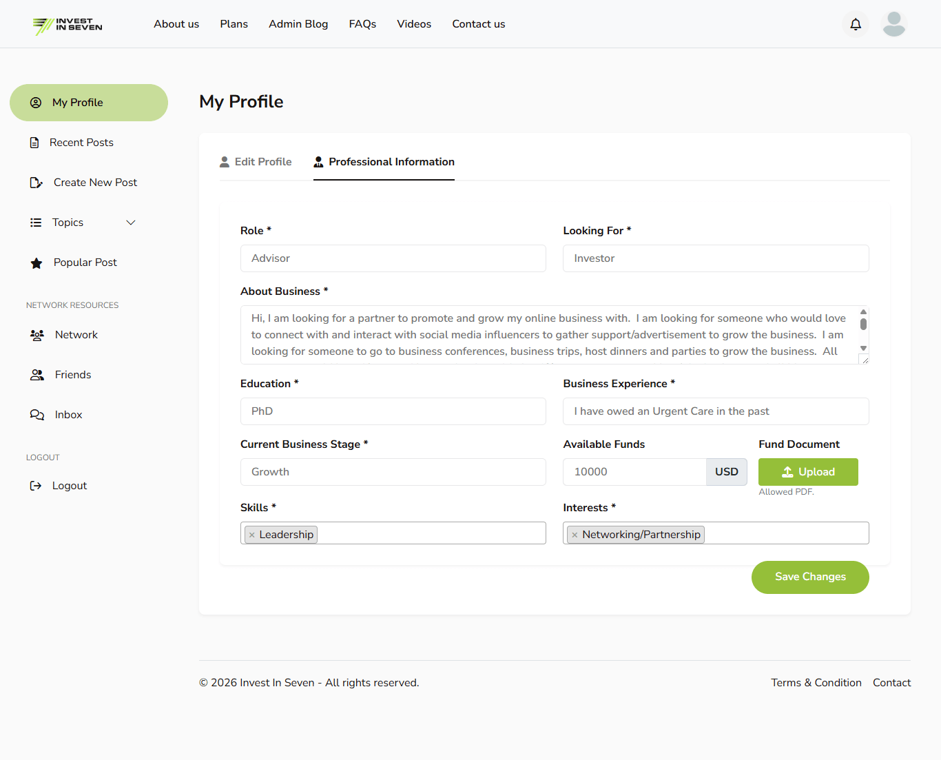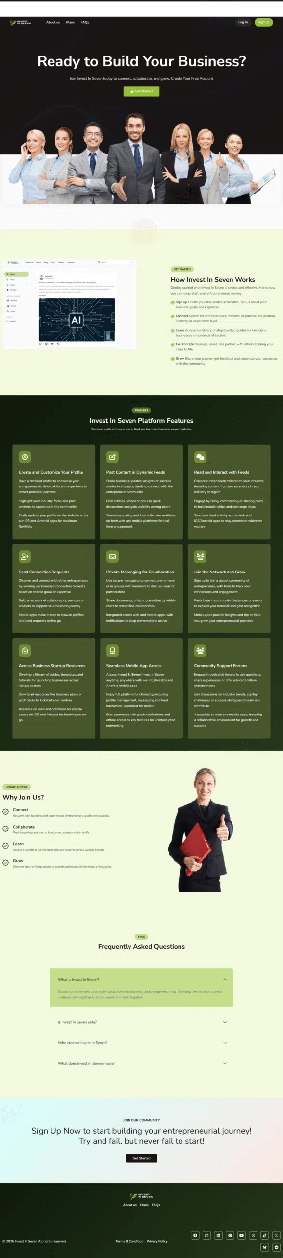 Invest in Seven is a web-based membership and networking platform, specifically tailored towards business and entrepreneurship. The objective is to bring like-minded business professionals together to share, create and build their business together.