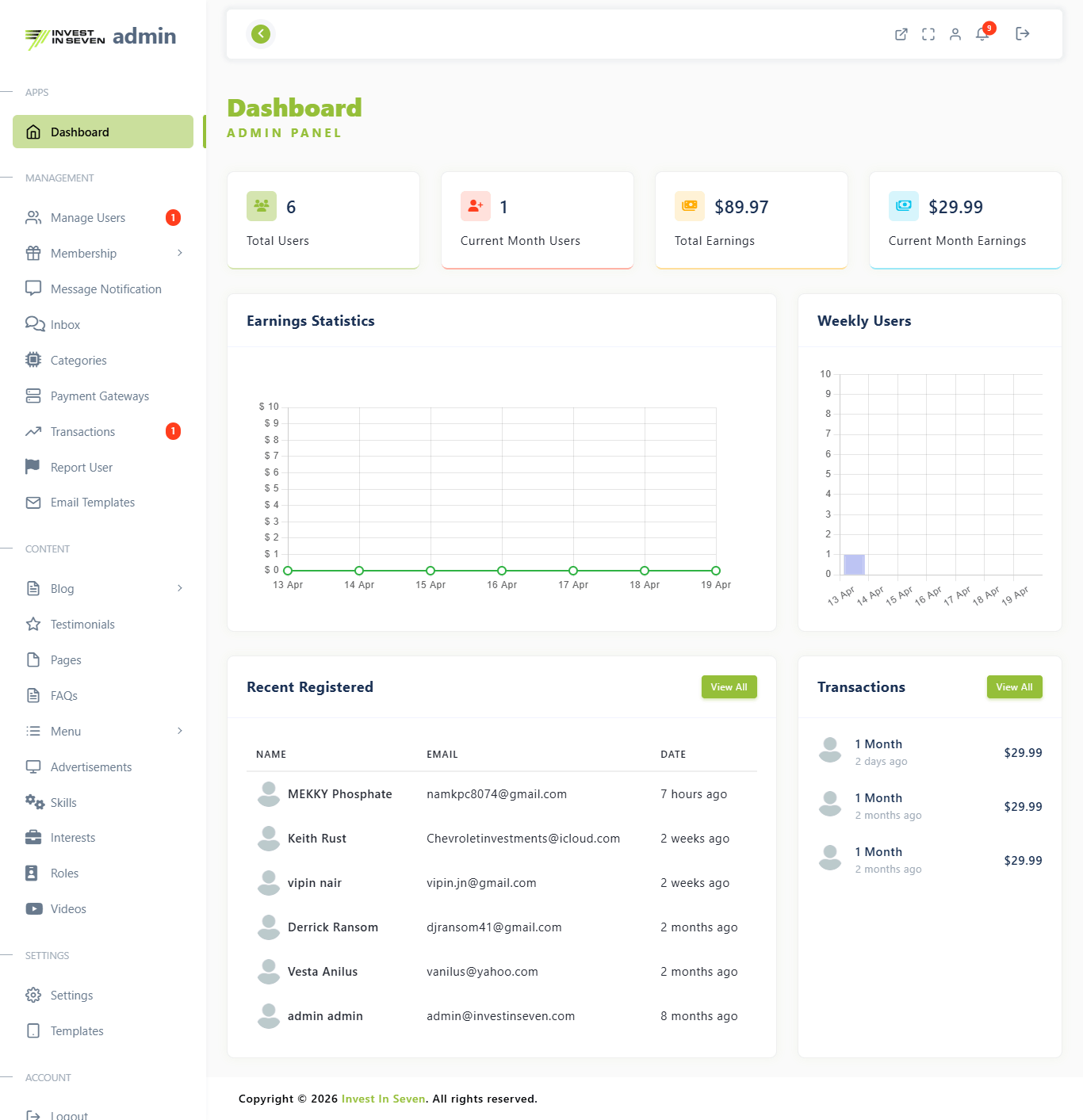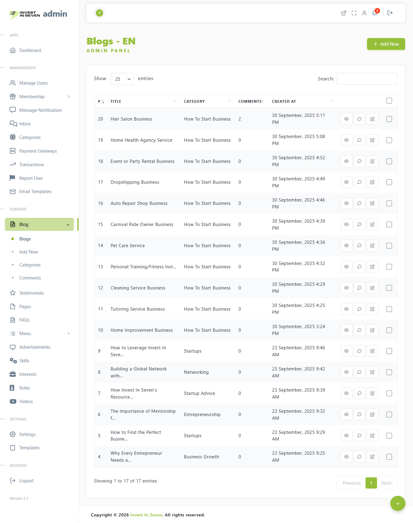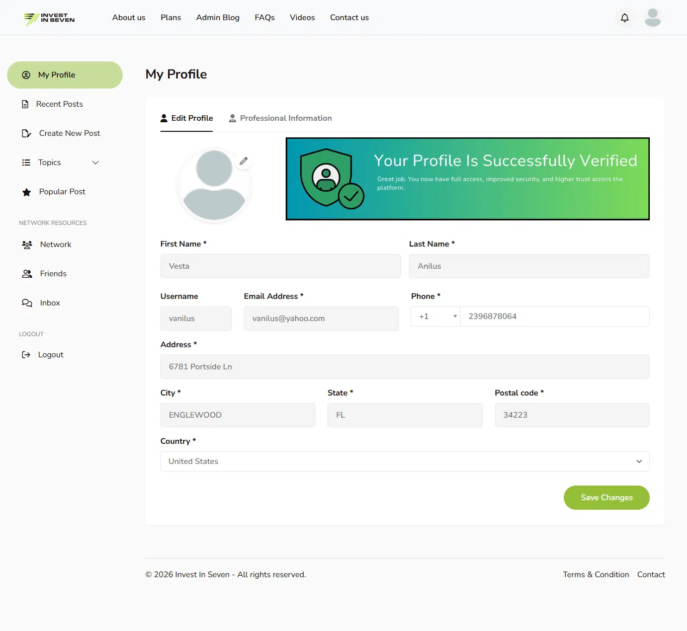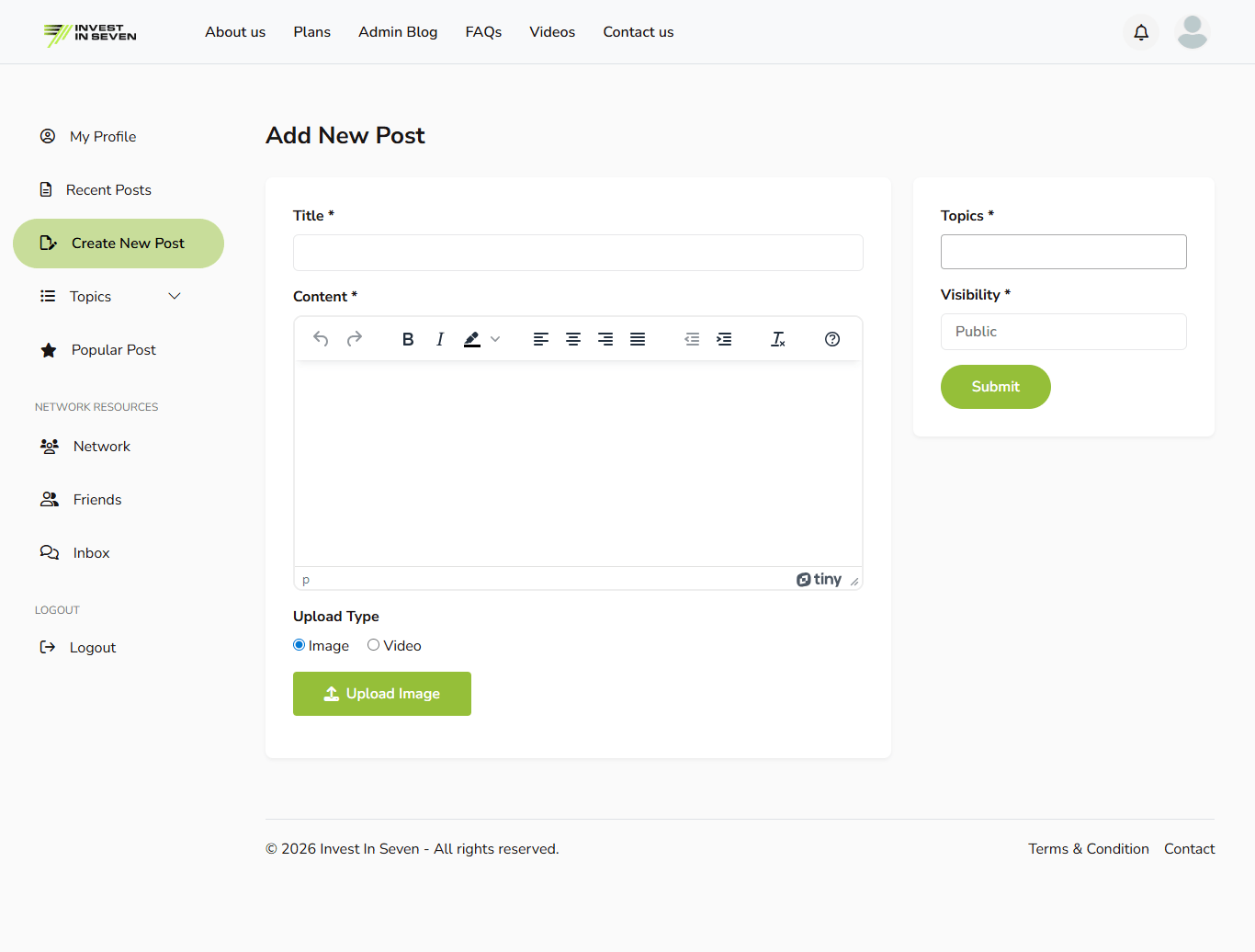 Invest in Seven is a web-based membership and networking platform, specifically tailored towards business and entrepreneurship. The objective is to bring like-minded business professionals together to share, create and build their business together.