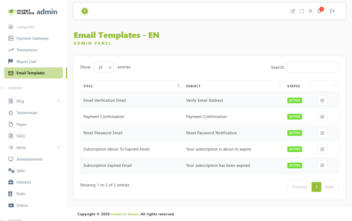 Admin can manage resources and content, manage users as well as their activity and subscriptions, and oversee all communications.