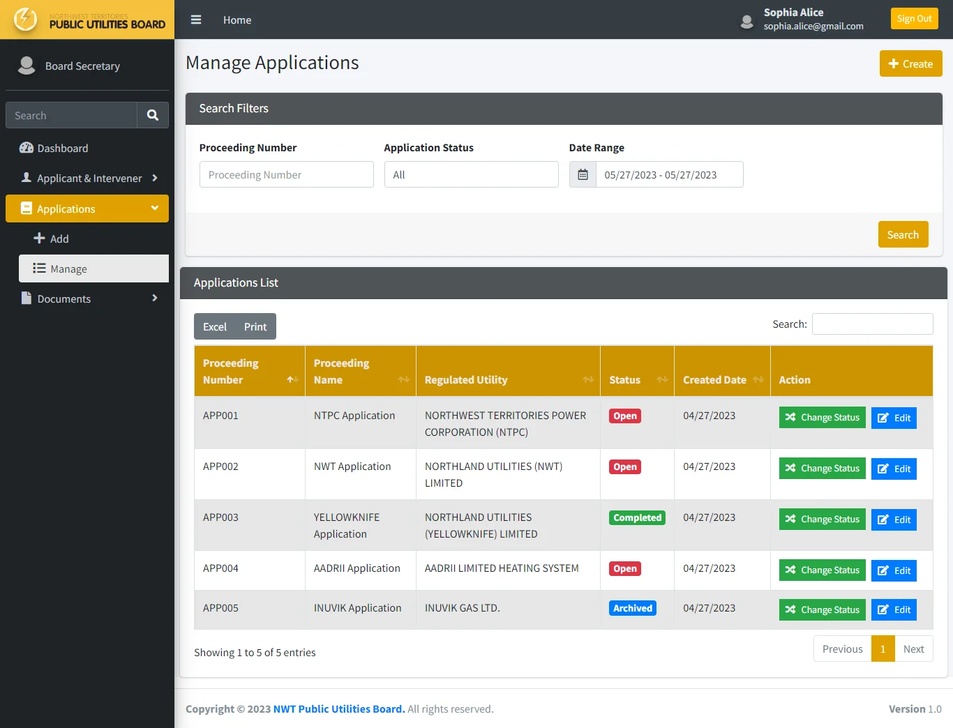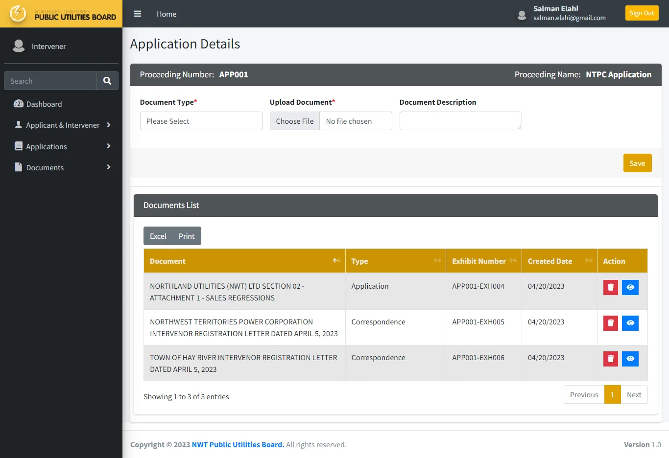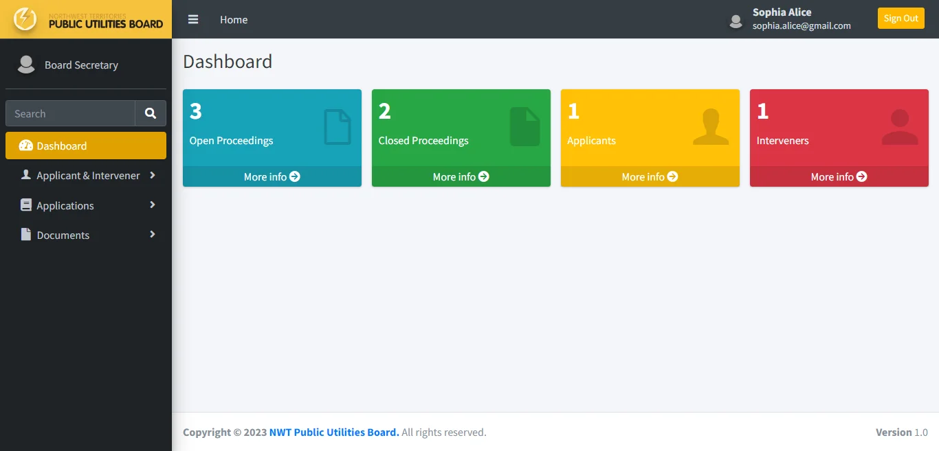 In the back-end portal, board secretary can create a new application and setup login access for the applicant to upload application and relevant documents. Board secretary also has the ability to setup mailing list for all concerned parties and setup login credentials for the intervener to upload relevant documents.