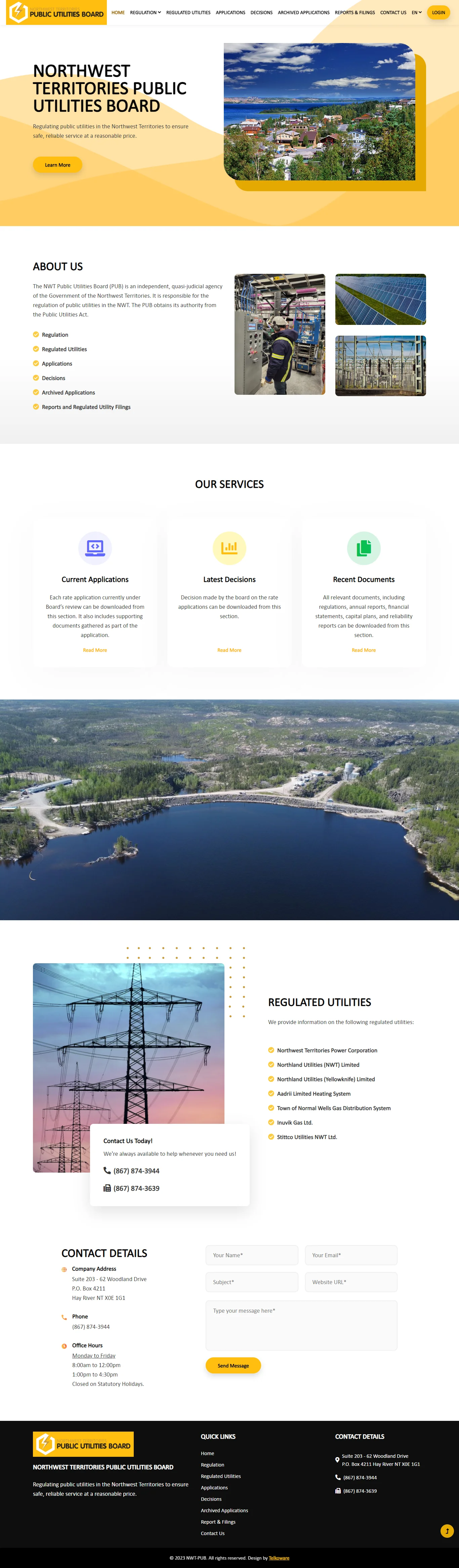 As part of this project, Telkoware team not only revamped the current website (https://nwtpublicutilitiesboard.ca/), but also integrated it with an efficient Document Management System (DMS) to streamline and automate the current manual processes.