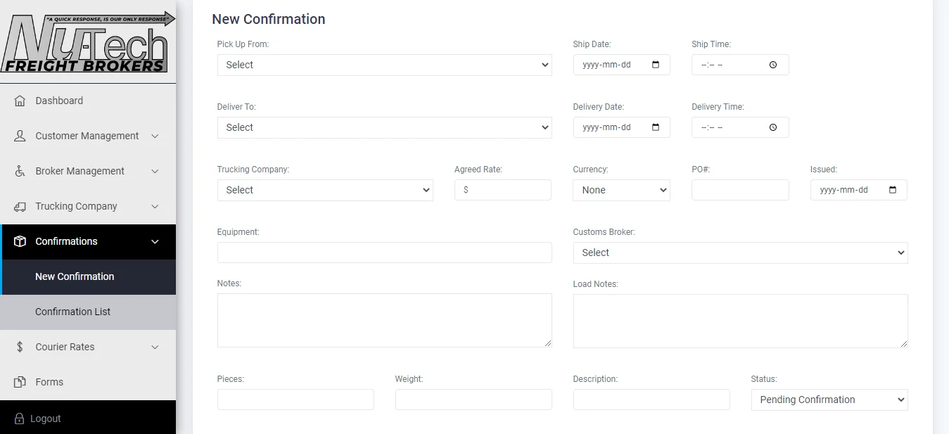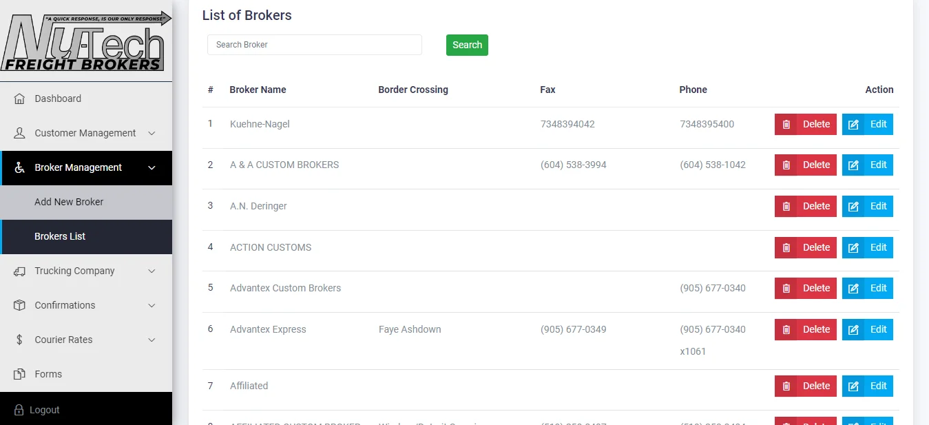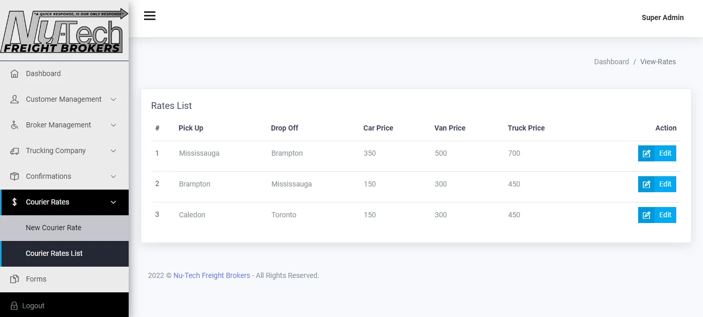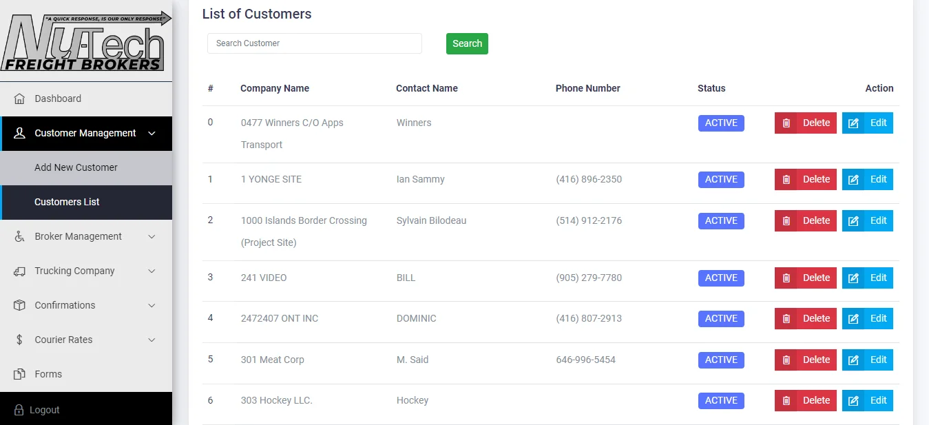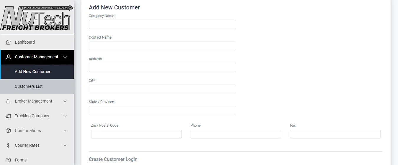 There is a front-end website, which provides visitors with information on offered services with an option to submit a courier rate request, freight rate request, and account application.