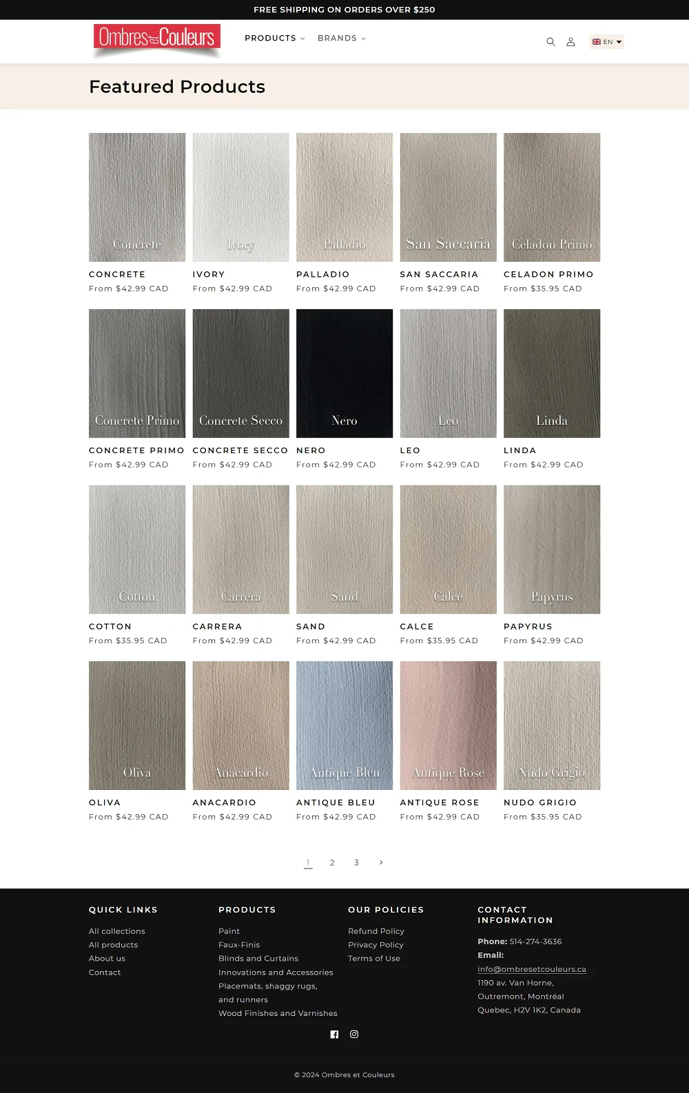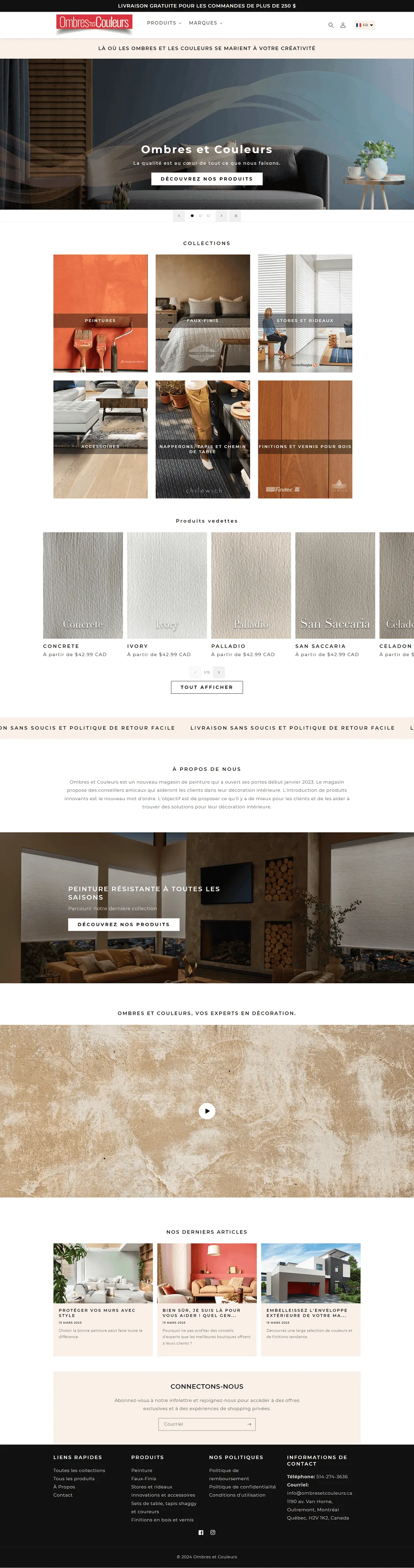 Ombres Et Couleurs is a shop, based in Montreal, Quebec. They are authorized resellers of Bejamin Moore and augmented their store with additional products for interior home decoration, including blinds and curtains, sheer, placemat and runners, and other accessories.