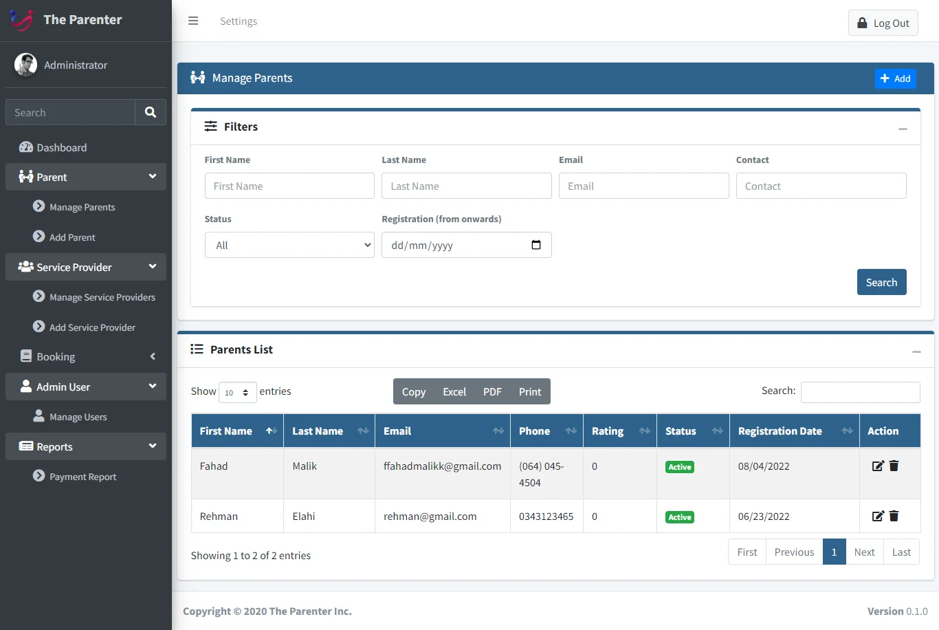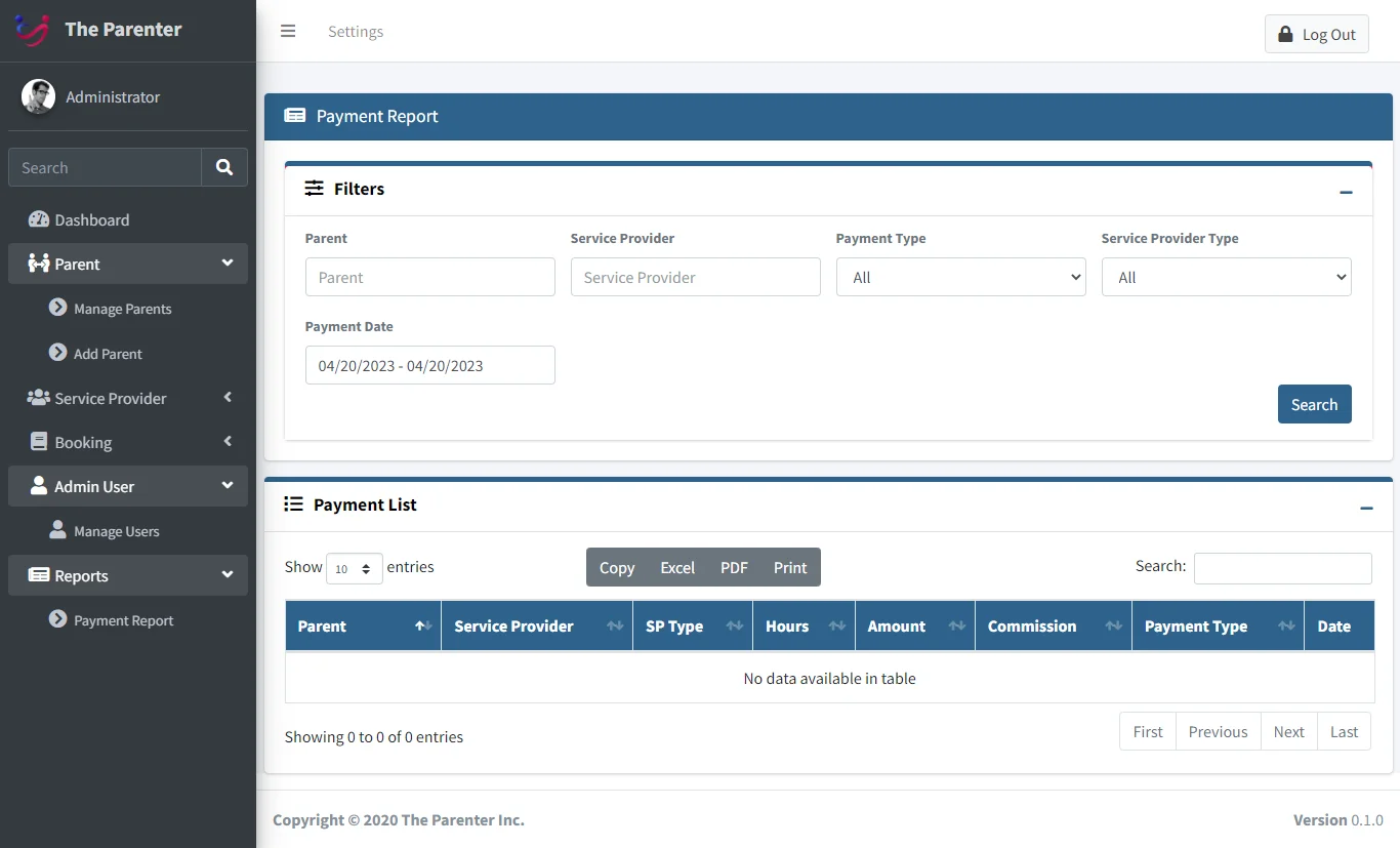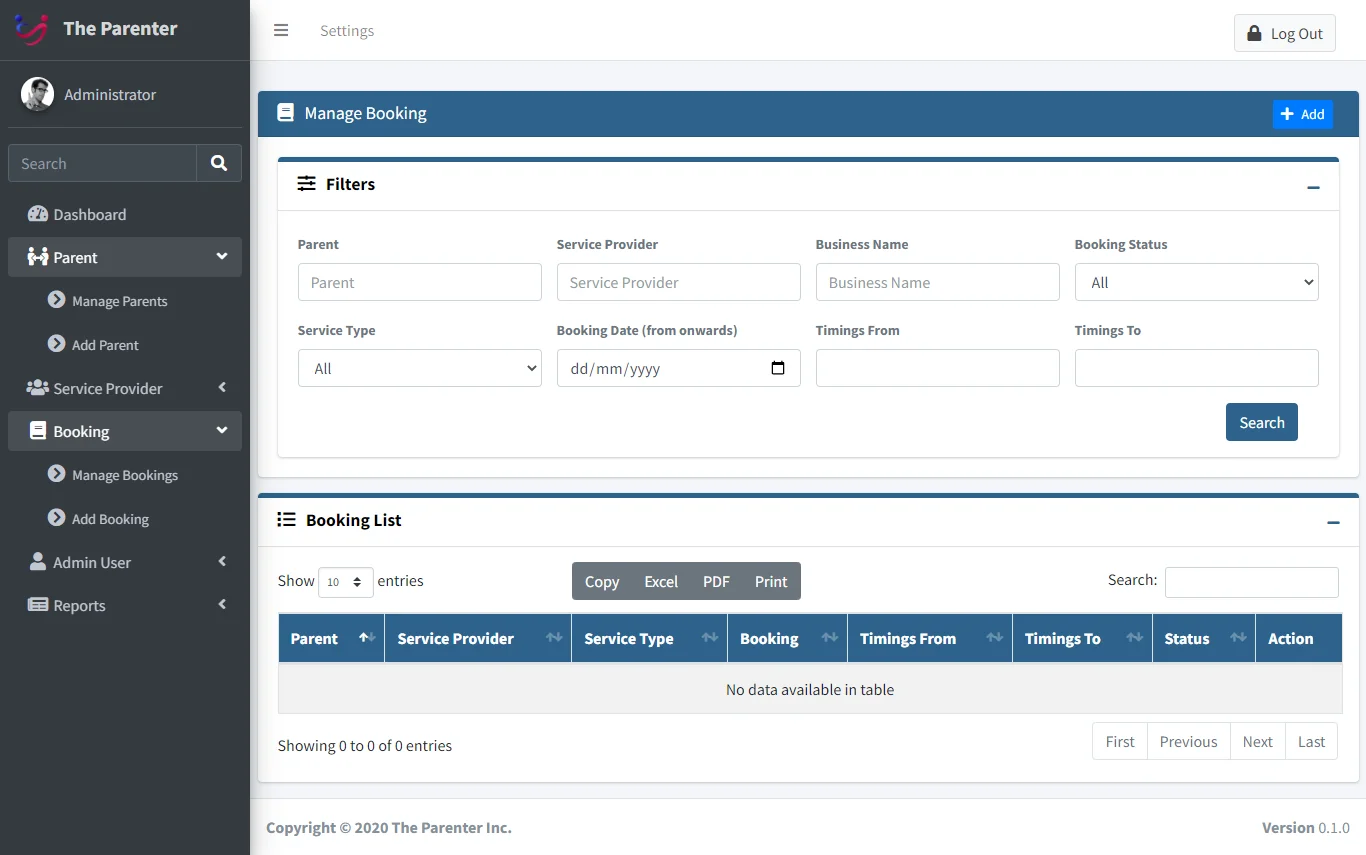 A web-based admin portal, which allows administrators to manage users and service providers, configure service tiers, manage bookings, and view payment details.