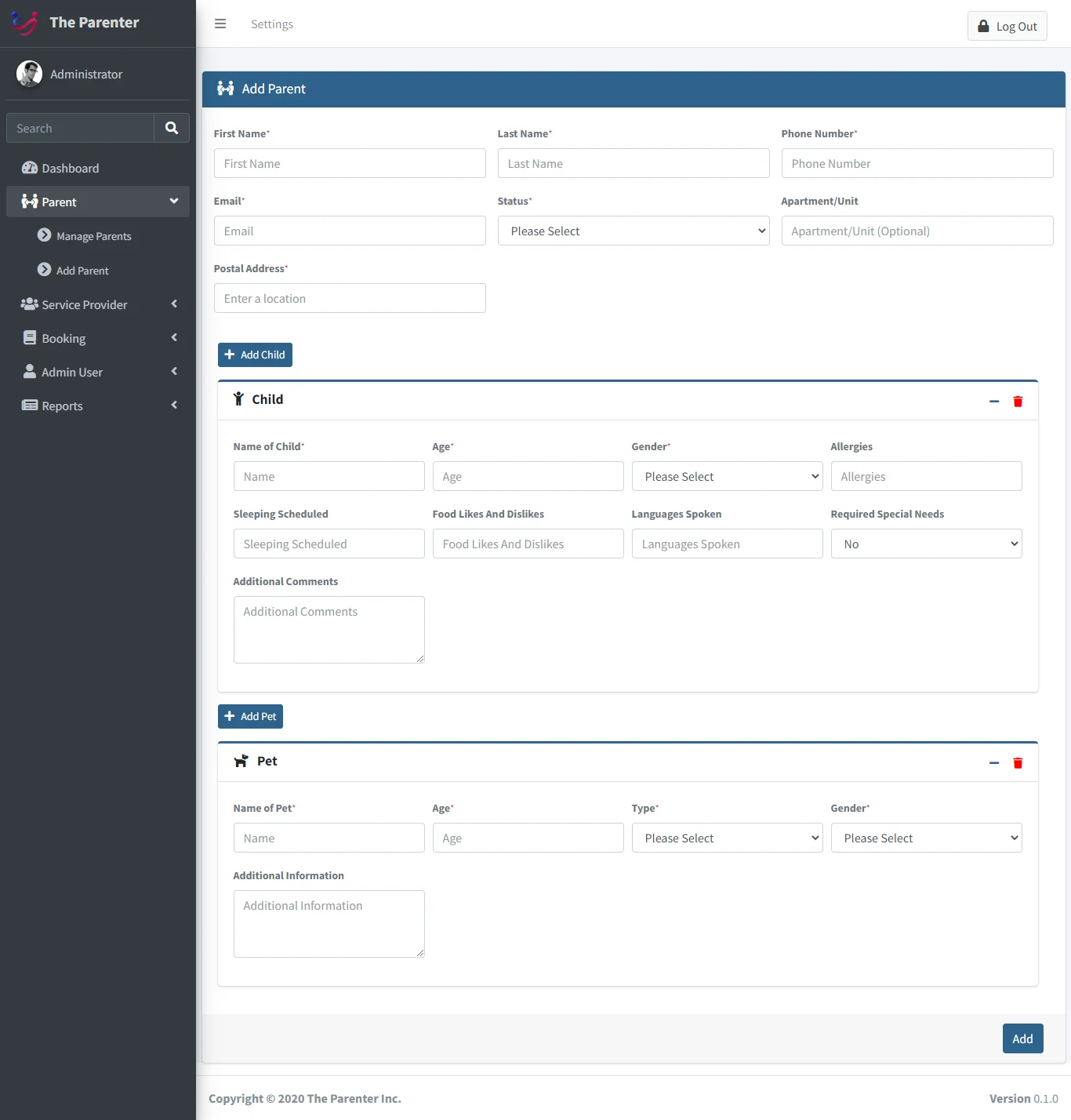A mobile app, which allows users to find caregivers, daycare centres, and kennels. Users can create their profile and enter information of their children and pets. Service providers can create their profile and insert details of different types of offered services. This app will connect users with service providers and book services and make online payment.